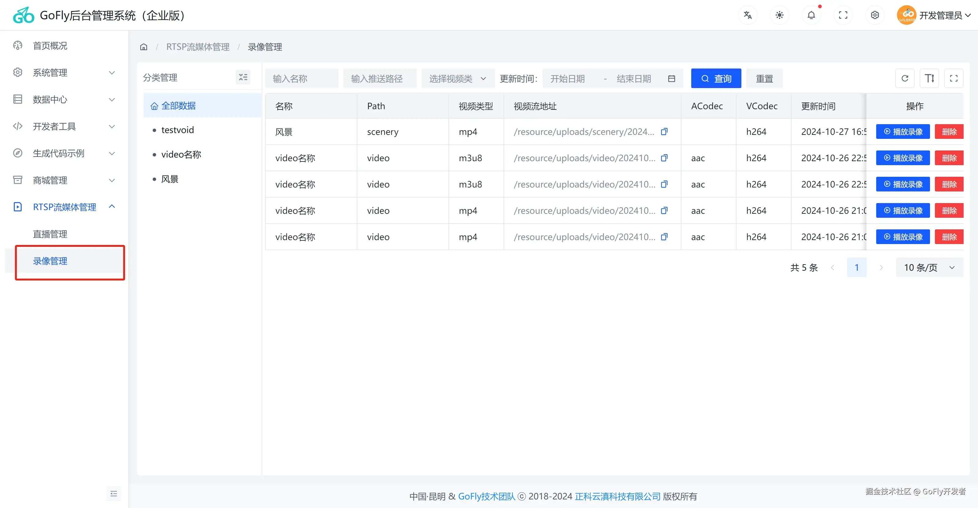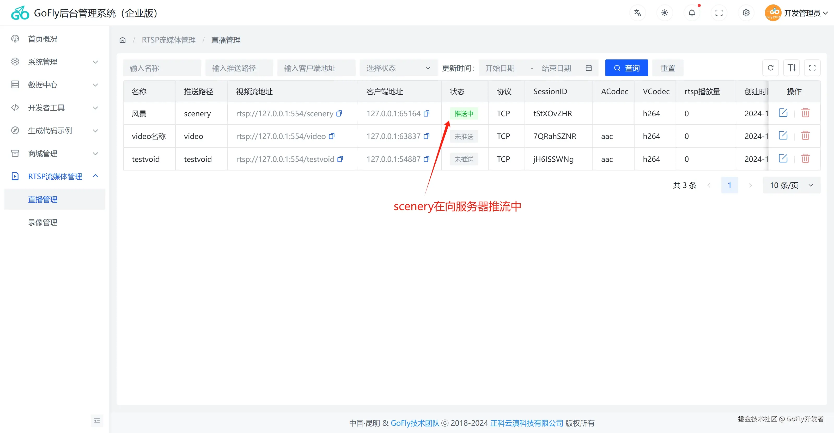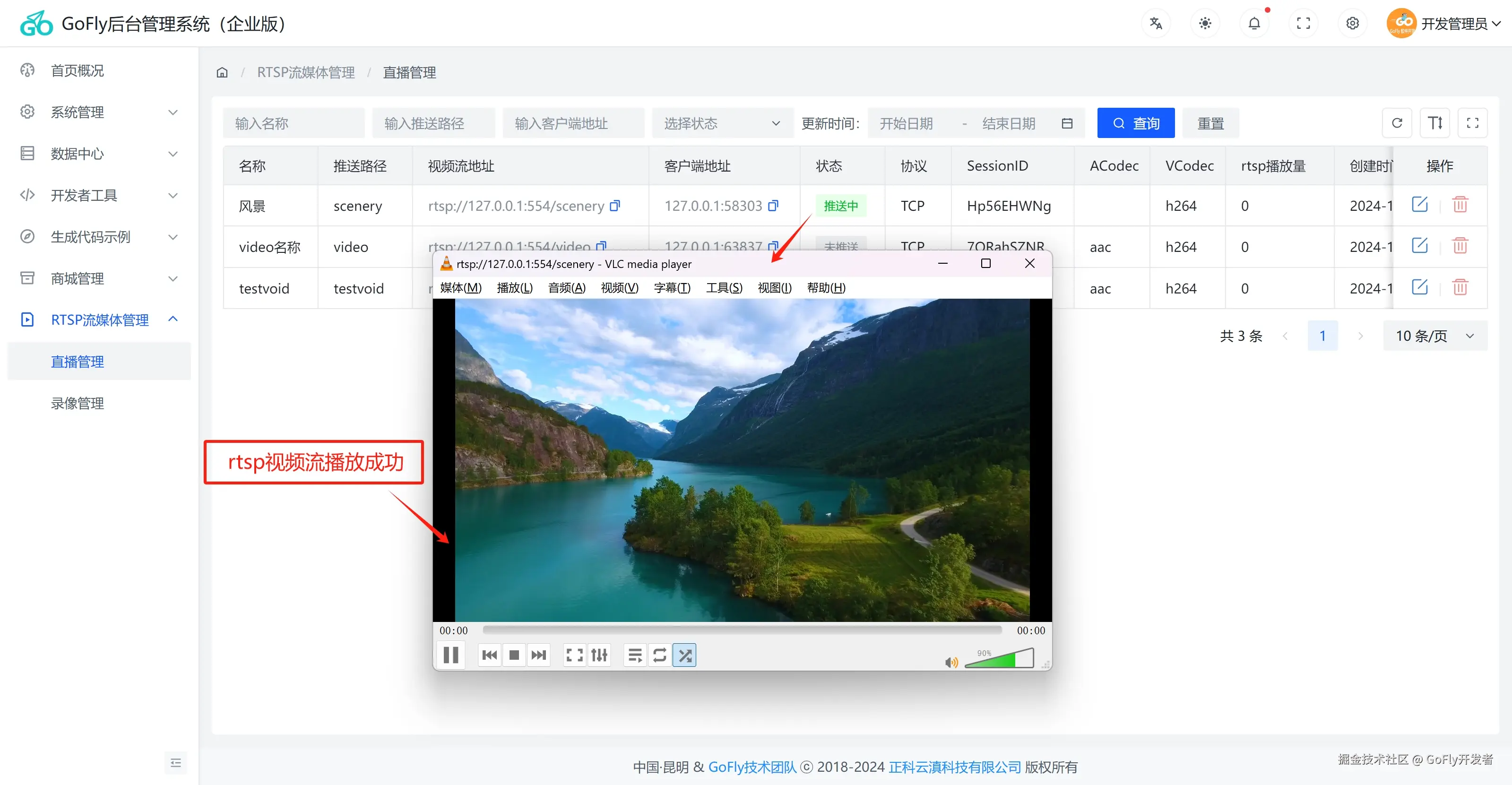 本插件除了在GoFly快速开发框架使用外,我们可以把插件简单改造就可以加入到其他Go开发框架,也可以独立开发成存RTSP功能服务器,我们集成到的GoFly管理后台是方便和其他业务统一管理。