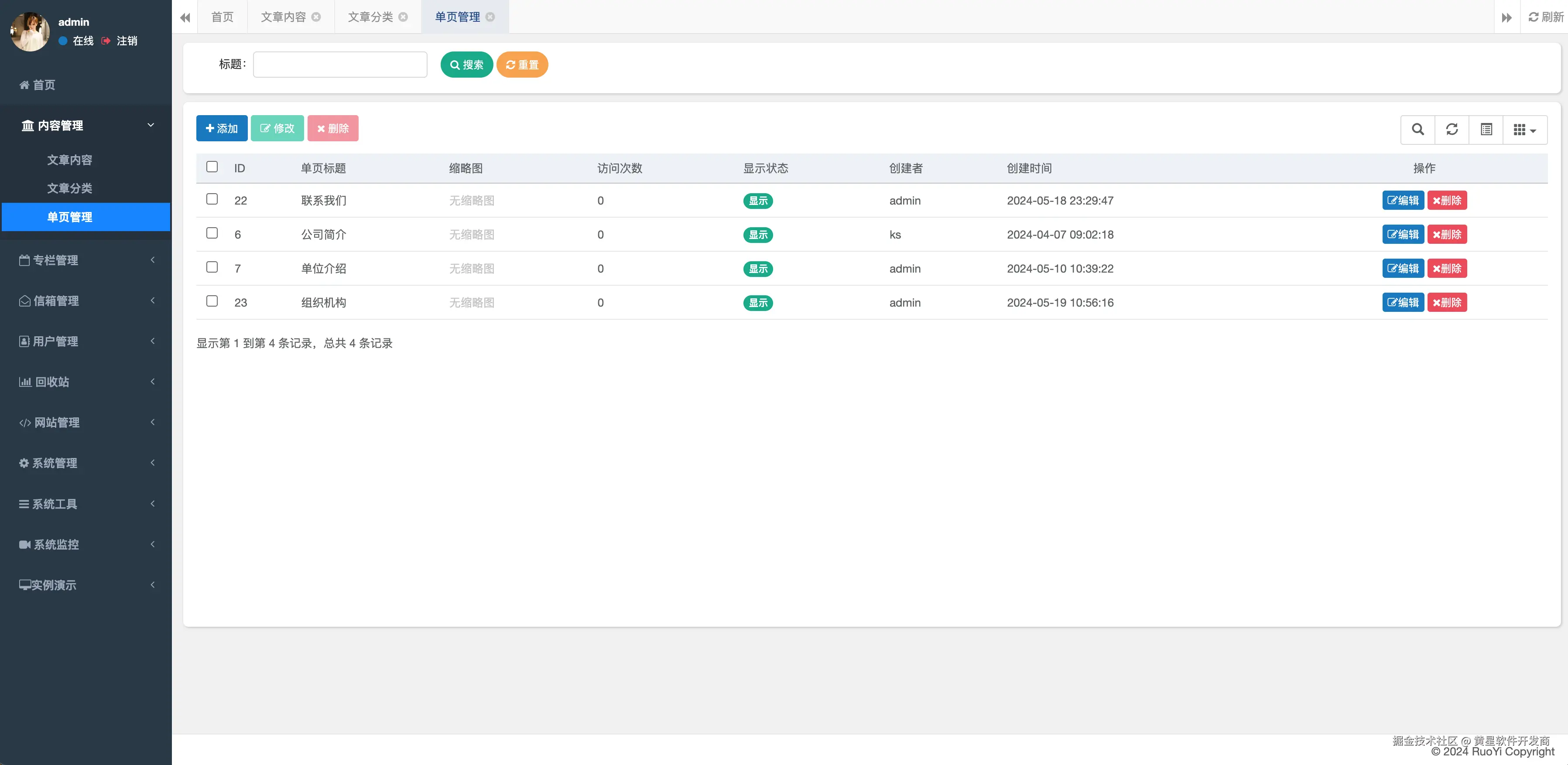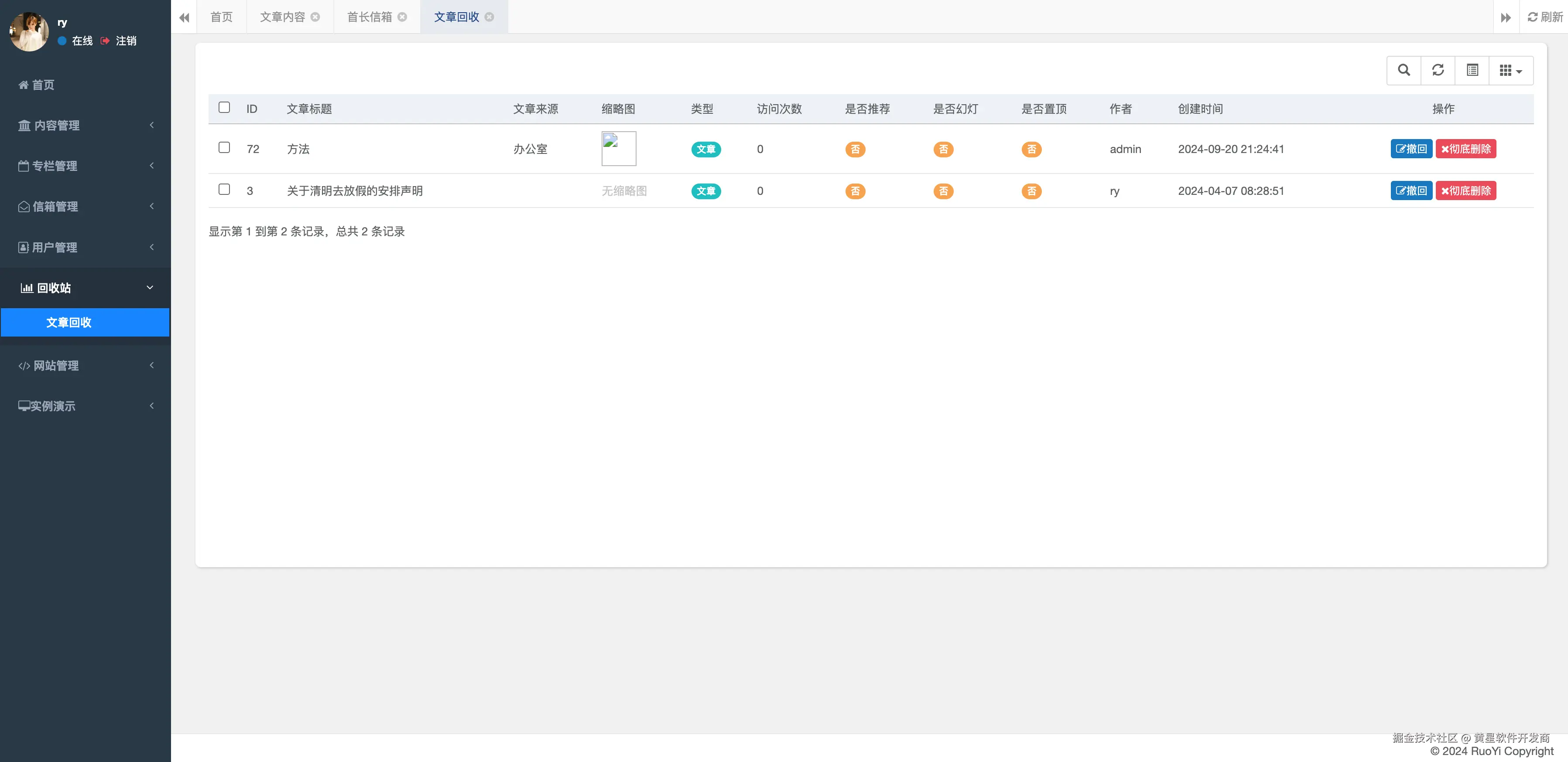 基于RuoYi-fast v4.7.9开发的轻量级Java网站内容管理系统