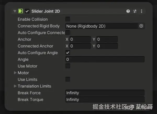 总的来说,Slider Joint 2D是一种非常有用的2D关节组件,可以用于创建各种复杂的物理模拟和动画效果。