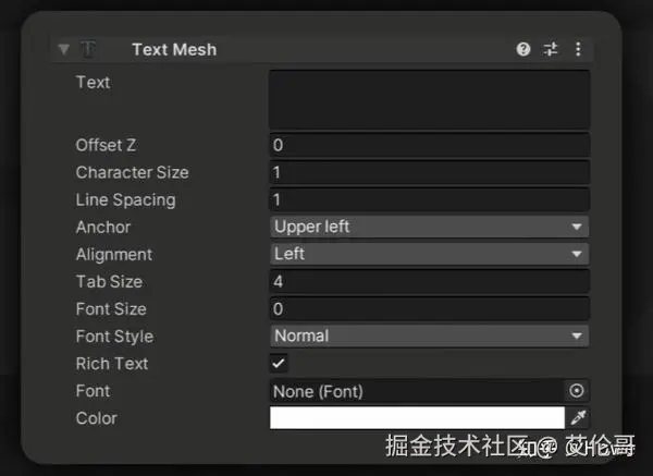 总之,Text Mesh 是 Unity 中非常高效的文本渲染组件,适用于需要大量文本渲染的场景,例如大量的标签、计分板、物品名称等等。