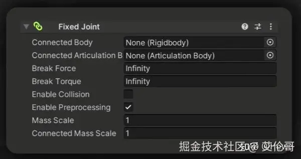 总的来说,Fixed Joint是实现游戏物理效果的一个非常有用的组件,可以让开发者轻松地模拟刚体之间的连接效果,从而实现各种有趣的游戏场景。