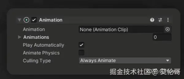 Animation可以将多个动画片段组合成动画剪辑,并控制动画剪辑的播放速度、循环方式和动画帧率。它还可以通过代码控制动画剪辑的播放和停止,控制游戏对象的动画行为。