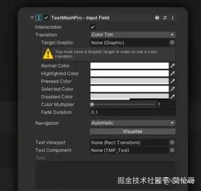 用于实现高质量的文本渲染。与 Unity 自带的 Text 组件相比,TextMeshPro-Text 具有更高的渲染质量、更多的文本特效和更丰富的文本格式控制。