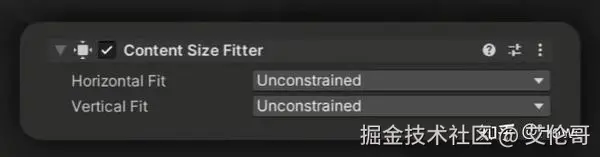 Content Size Fitter可以设置UI元素的最小和最大尺寸,还可以设置UI元素的宽度和高度是否应该根据其内容自动调整。它可以根据UI元素的内容自动调整UI元素的大小,使其适应不同的屏幕尺寸和分辨率。