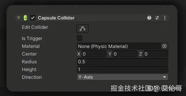 用于将游戏对象转换为一个胶囊形状的物理碰撞体。Capsule Collider 可以与刚体组件一起使用,以便让游戏对象能够受到外力的作用,并且可以与其他类型的碰撞体进行碰撞检测。