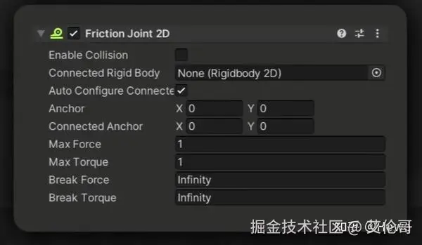 用于模拟两个游戏对象之间的摩擦力效果,使得它们之间的运动产生摩擦力。它可以模拟物理学中的摩擦效应,使得两个游戏对象之间的运动更加真实。