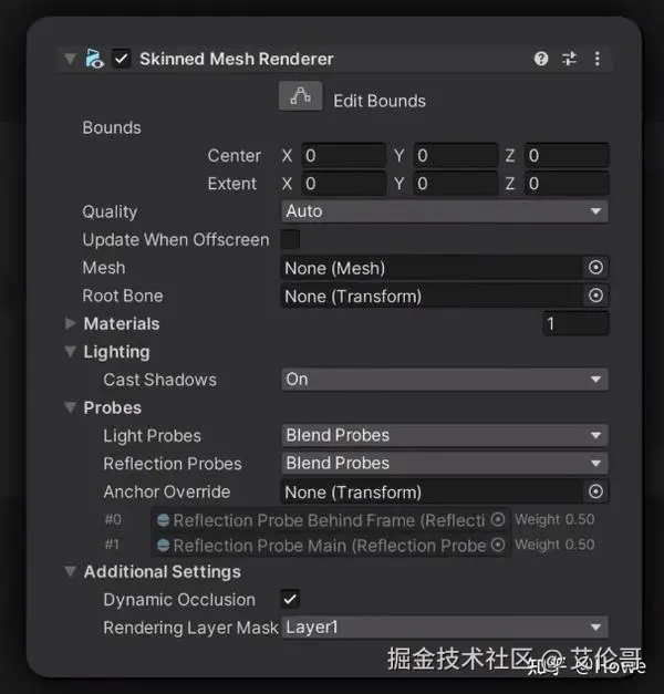 Skinned Mesh Renderer 可以在 3D 模型上应用骨骼动画,使得模型能够根据动画数据进行变形,从而实现角色的动画效果。它使用骨骼系统来管理骨骼和骨骼权重,并将这些信息应用到 3D 模型上,从而实现动画的变形效果。