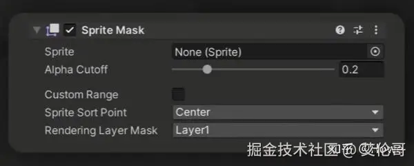 它可以将2D精灵遮罩,以创建各种视觉效果。使用Sprite Mask可以创建各种遮罩,如圆形、矩形、多边形等,并可以将其应用于2D精灵、UI元素和文本等。
