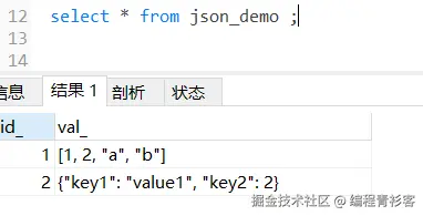 cast(… as json)会根据提供的字符串格式,转换为JSON数组或JSON对象: