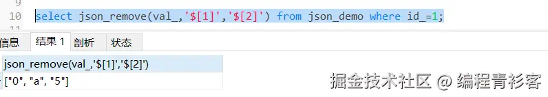 select json_remove(val_,'$[1]','$[2]') from json_demo where id_=1;
