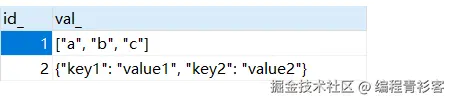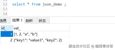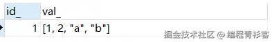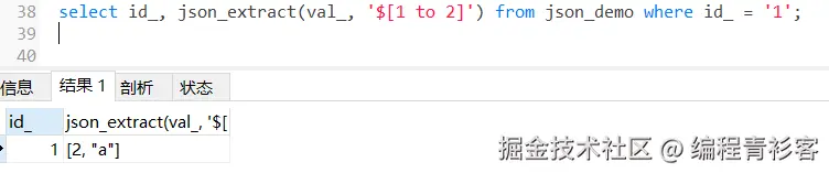 json_extract(val, '$[1 to 2]')取出JSON数组中