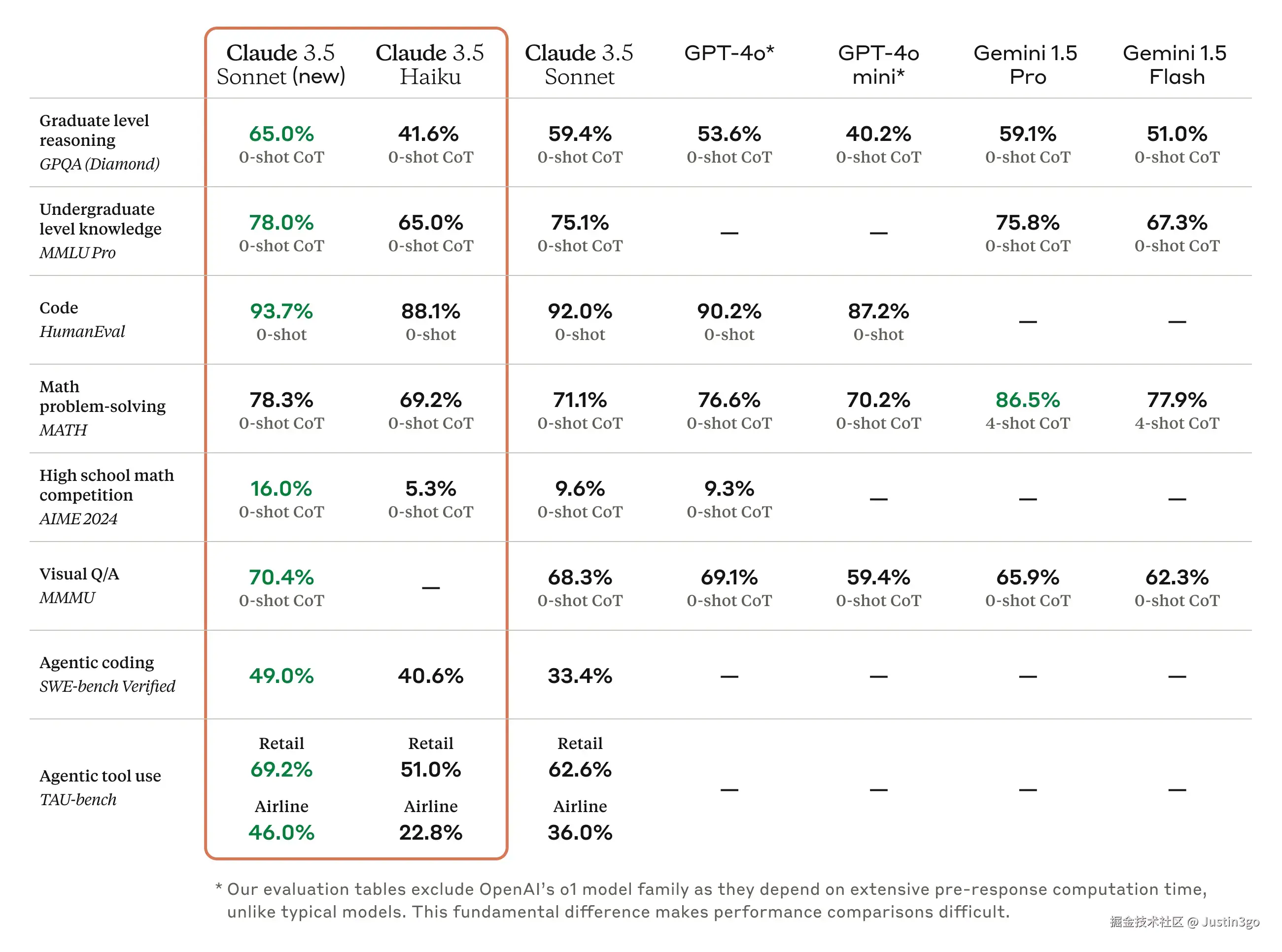 更新后的 Claude 3.5 Sonnet 在行业基准上显示出广泛的改进,特别是在自主编码和工具使用任务上取得了显著的进展。在编码方面,它在 SWE-bench Verified 上的表现从 33.4% 提升至 49.0%,得分高于所有公开可用的模型——包括像 OpenAI o1-preview 这样的推理模型和专为自主编码设计的系统。