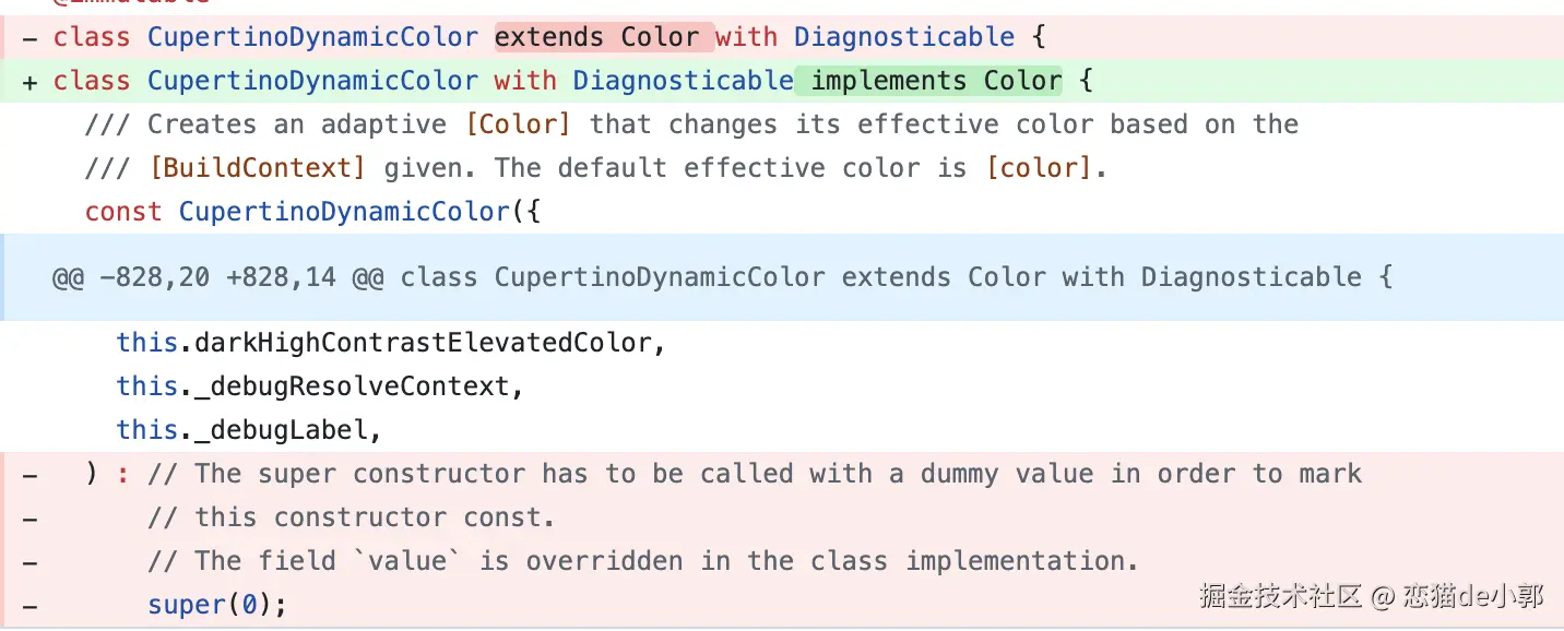 另外,如果有对于 Color 的继承最好暂时换成 implements ,也就是不需要再实现 super 相关部分逻辑,另外为什么说是暂时,因为目前 Flutter 团队计划未来 Color 会锁定并通过 sealed 封闭,所以如果通过 sealed 封闭 ,那以后基本不会有 Color 的外部实现了: