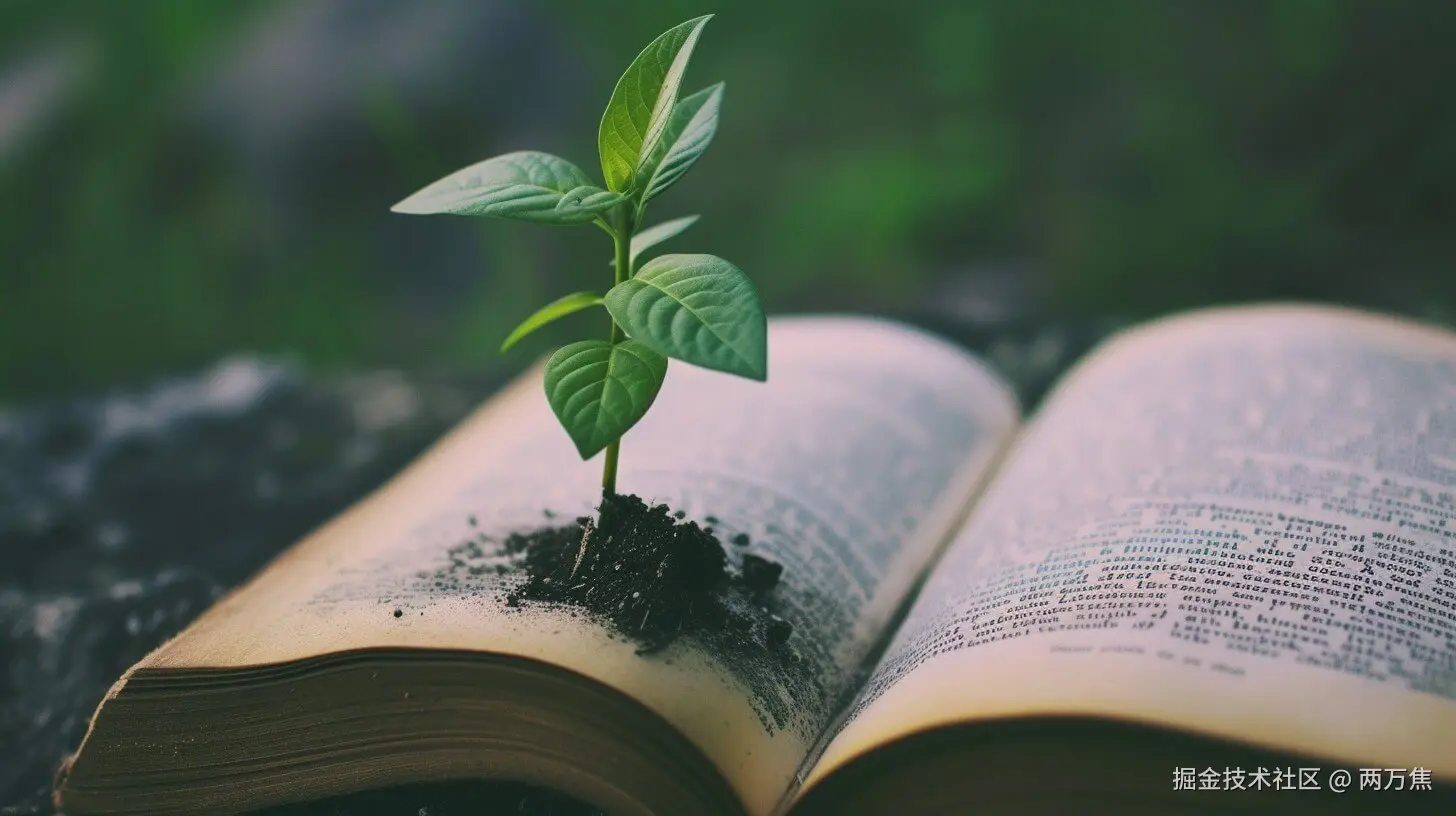 [!prompt]+ In this thought-provoking image, we witness the beautiful symbiosis between nature and knowledge. A young, green plant has taken root within the soil-filled pages of an open book, suggesting that from the seeds of education, wisdom grows. The juxtaposition of the organic plant with the written word evokes a sense of hope and the cyclical nature of life and learning. It's a powerful statement about the nurturing role of knowledge in fostering growth, and a reminder of the endless possibilities that can arise from the fertile soil of the mind.