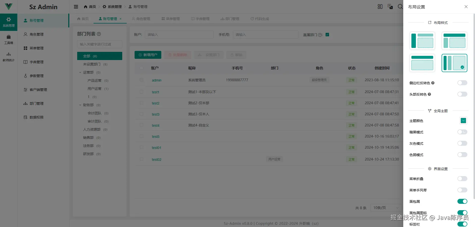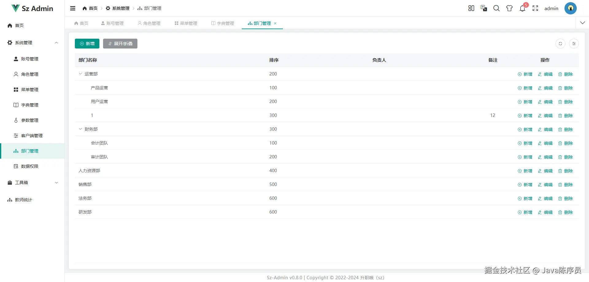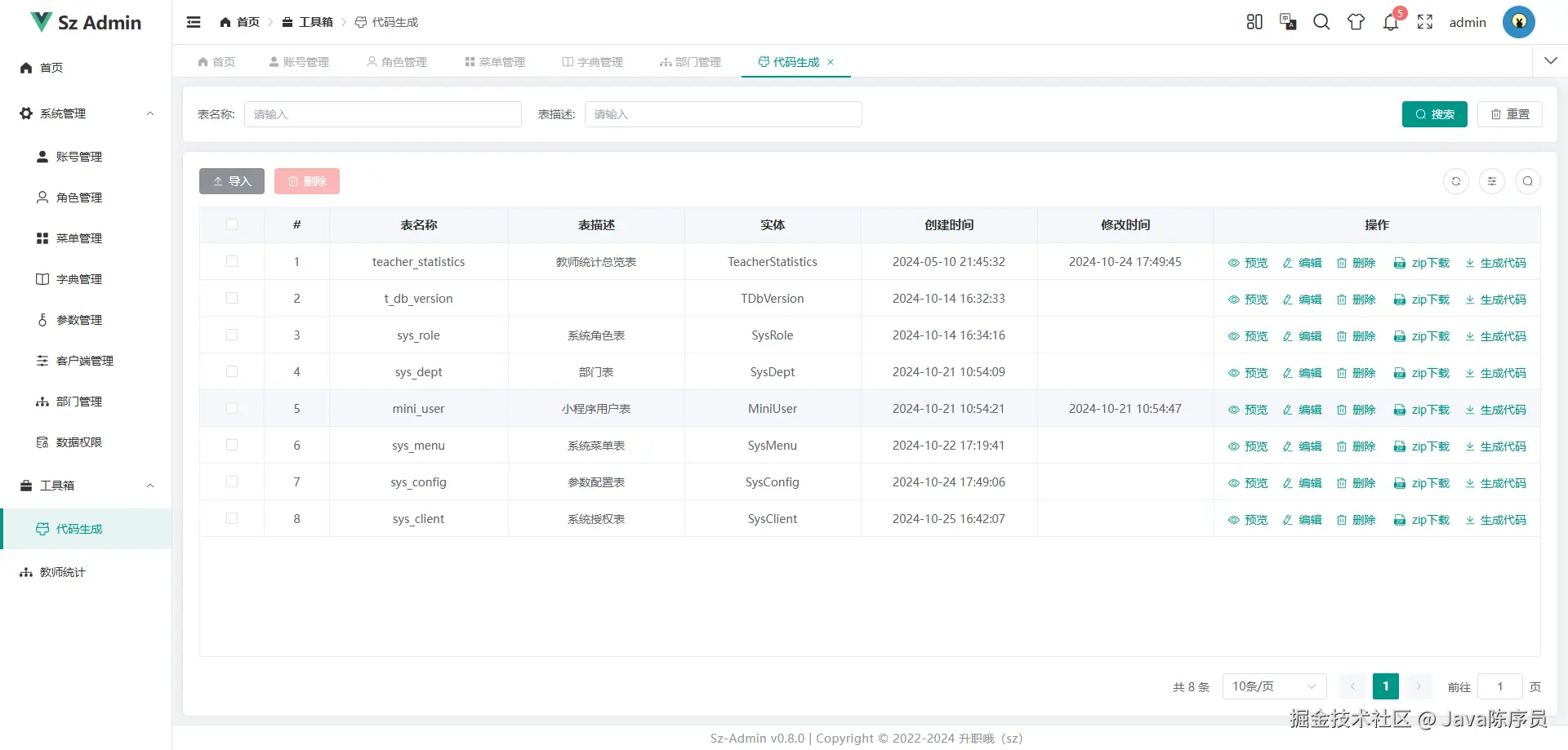 Sz-Admin —— 意为升职Admin(升职加薪节节高),一个基于 SpringBoot3、Vue3 和 Element-Plus 的开源中后台管理框架,致力于为您提供一个流畅、直观且功能强大的开发框架。