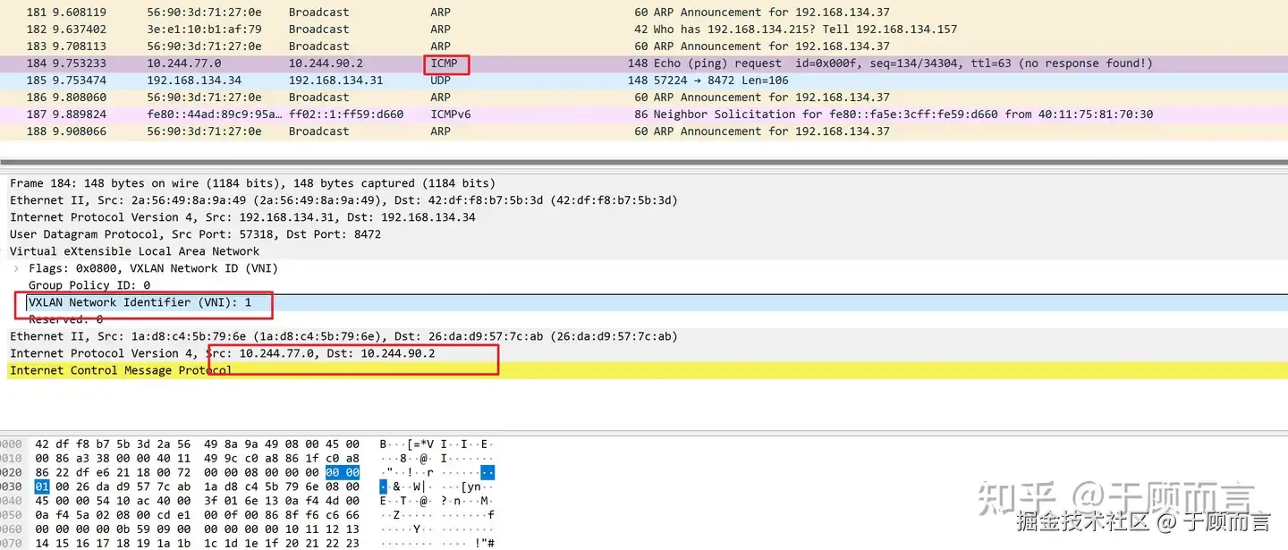 - 我抓个包,看看跨主机是不是vxlan,别忽悠我