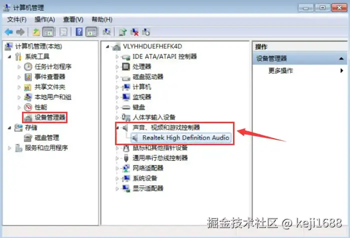 打开【设备管理器】,找到【声音】选项,再找到声卡设备。右键点击声卡设备,选择【更新驱动程序软件】,重新启动电脑让系统自动安装驱动程序。