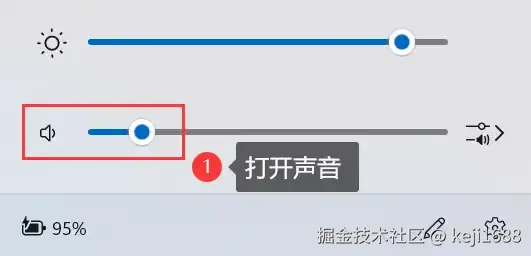 电脑没有声音怎么办?首先,检查电脑右下角的音量图标,查看是否处在静音状态或音量过低音量。可以点击【声音】符号,对声音进行开启。
