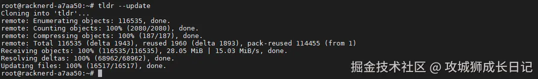 这样可以确保您拥有最新版本的TLDR手册页。如果返回如下结果: