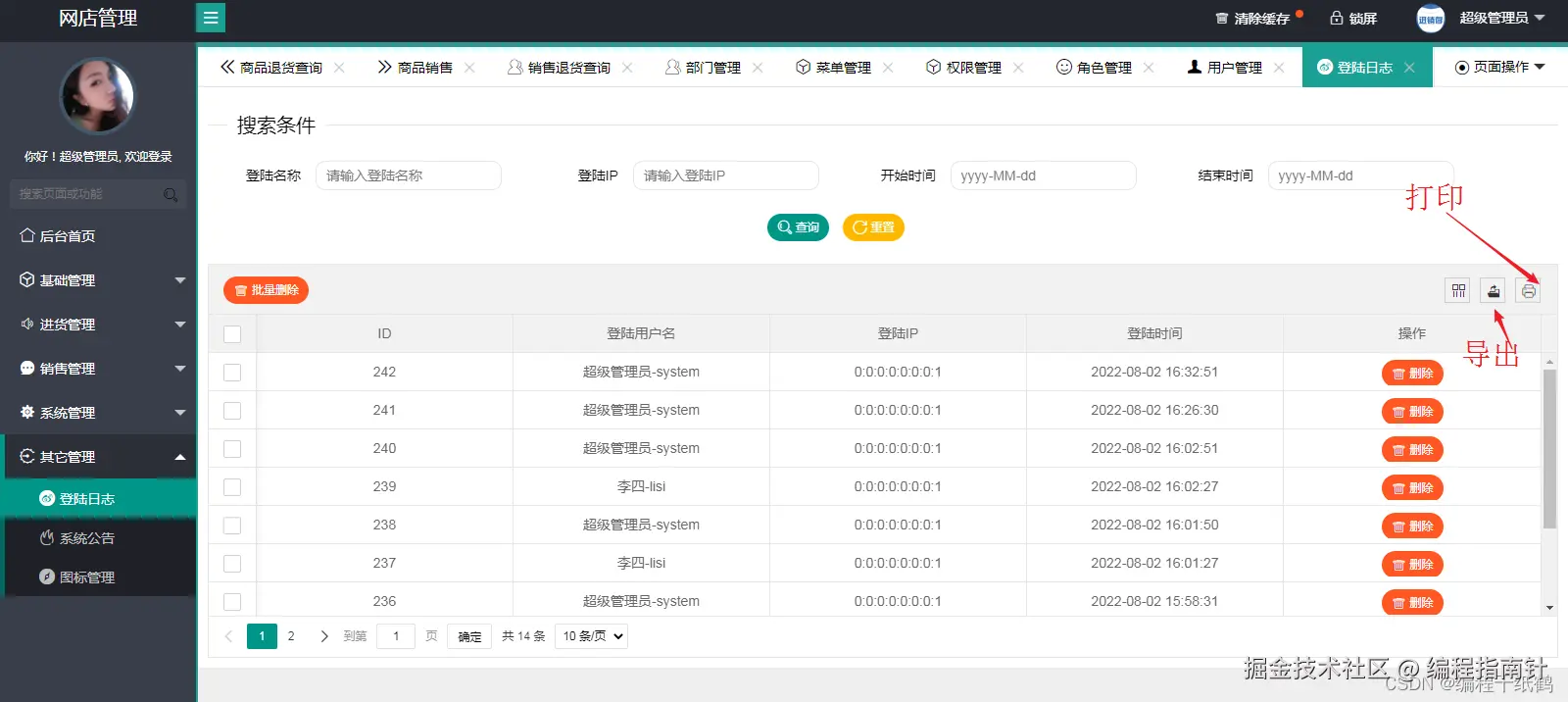 其它管理—登陆日志