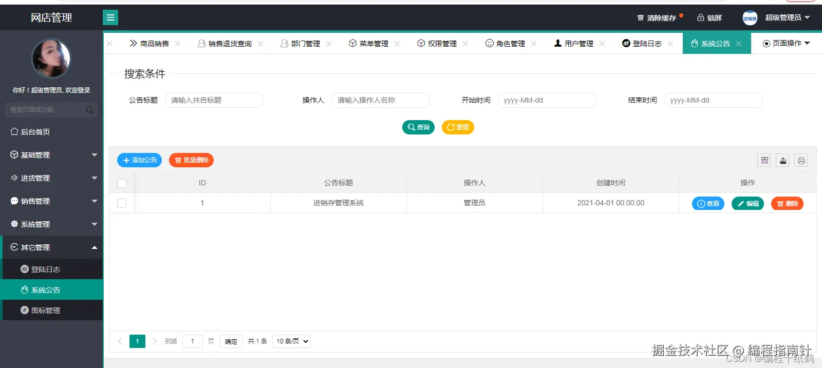 其它管理—系统公告