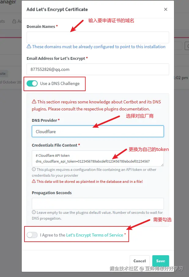 完成下面的操作并保存即可申请证书,我是在京东云注册的域名,用的cloudflare的DNS,这里需要先将京东云的域名的DNS服务器修改为cloudflare分配的服务器。