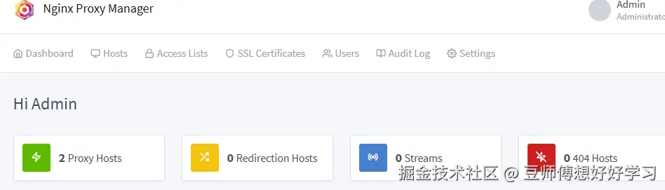 nginx-proxy-manager 是一个反向代理管理系统,它基于 NGINX,具有漂亮干净的 Web UI。还可以获得受信任的 SSL 证书,并通过单独的配置、自定义和入侵保护来管理多个代理。