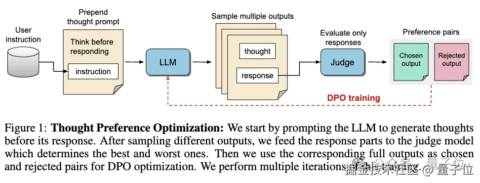 团队提出了一种称作思考偏好优化(Thought Preference Optimization)的方法,能让模型像 OpenAI-o1 一样,通过内部 “思考” 输出更好答案,最终只显示结果,不展示思考过程。