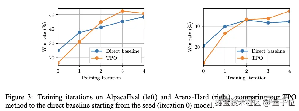 进一步加入 TPO,在 AlpacaEval、Arena-Hard 基准测试中,性能比基线再提升约 4%。