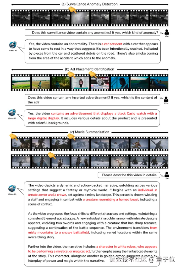 △图三 Video-XL 在长视频理解任务上的可视化结果