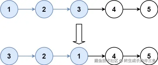 reverse)来实现子链表的反转。反转后,原本的子链表头部将成为新的尾部,尾部将成为新的头部。 - 重连链表:将反转后的子链表重新连接到原链表中。具体来说,将哑节点的