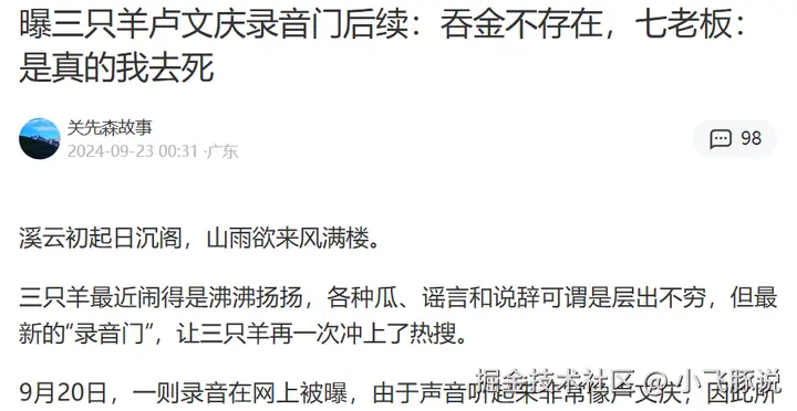国庆节之前,你要问我什么最火。无疑就是“三只羊”和“卢文庆”。而其中最火的就是“卢文庆的录音门”事件。火到一种什么程度呢!就是我乡下的奶奶都把他们当作饭后的谈资。
