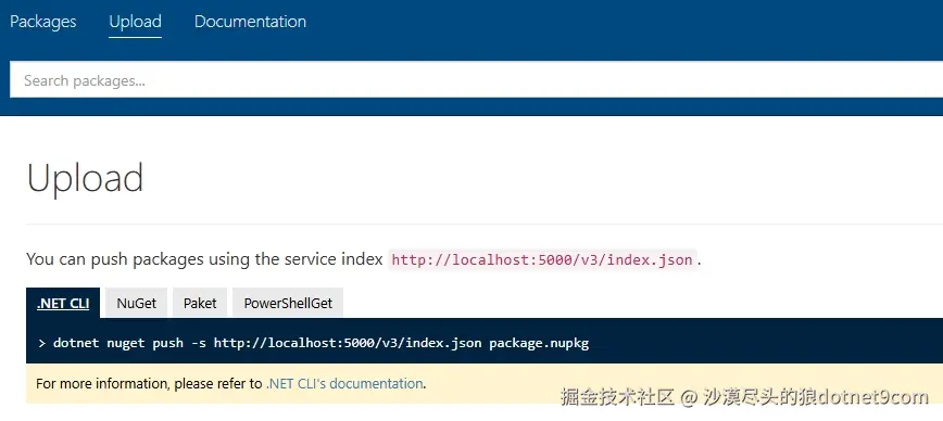 点击Upload a package,切换到NuGet包上传命令说明: