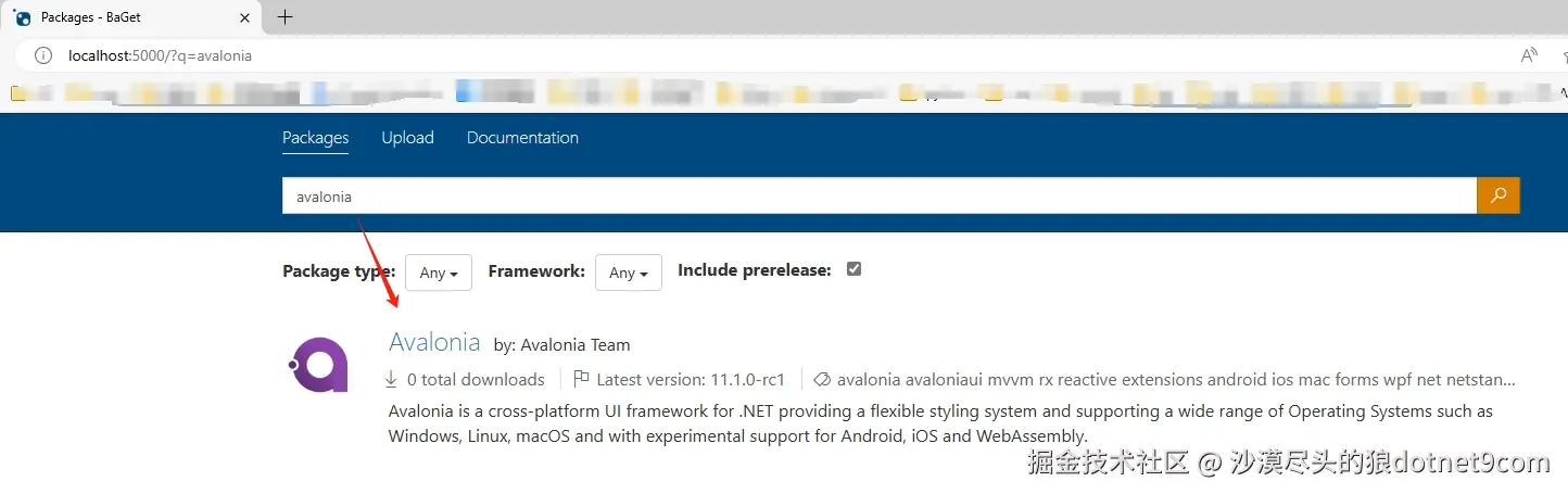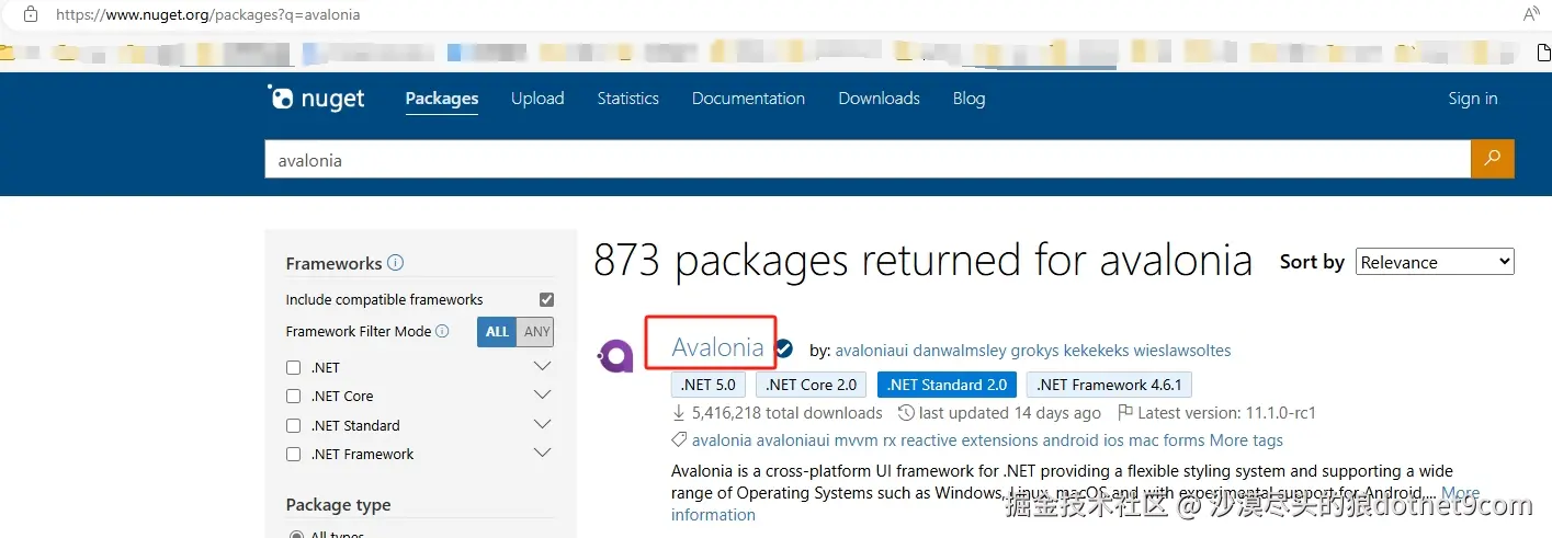 我们以.NET CLI上传NuGet包举例,首先准备NuGet文件,比如从NuGet官网搜索下载Avalonia UI的基础包: