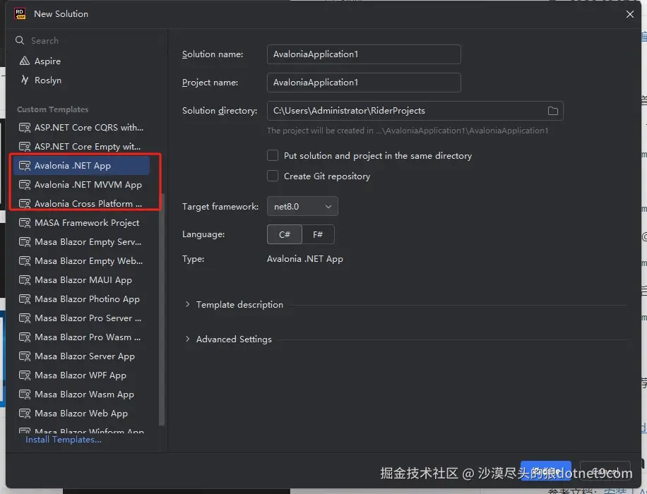 现在,无论是在Visual Studio还是JetBrains Rider中,您都可以使用Avalonia UI模板来创建新项目了。