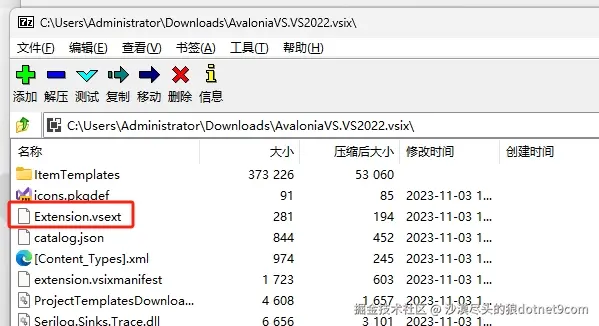 根据微信群内@rabbitism的解答(感谢@daidai_cn的帮助),我们可以通过解压该扩展文件,删除下图框选的Extension.vsext文件后再进行安装: