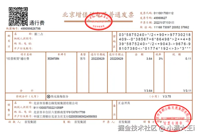 博主这里找一个电子发票,我们来试试效果如何(大家可以保存图片自行去官网尝试www.textin.com):