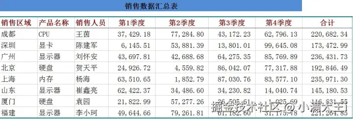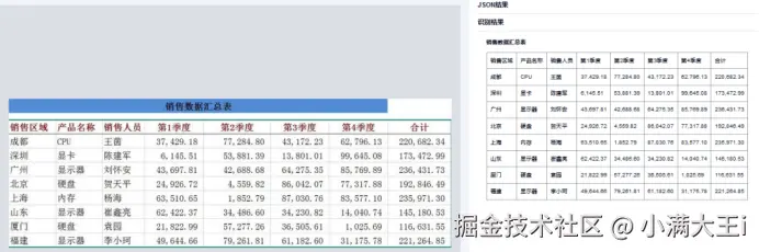 接下来我们来试试常见的表格数据提取效果如何,博主这里找一个销售数据汇总表(大家可以保存图片自行去官网尝试(www.textin.com):