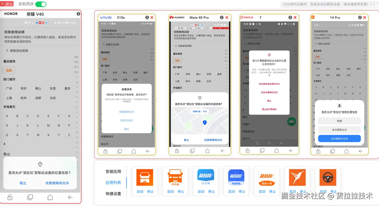 结合业界方案的调研与业务上对多机同步使用的诉求,再者,货拉拉在云真机建设的探索与成功实践(感兴趣的小伙伴可以参考我们之前发布的相关文章《货拉拉云真机平台的演进与实践》),我们决定基于货拉拉云真机来实践多机同步的测试。主要因为云真机有以下几个优势: