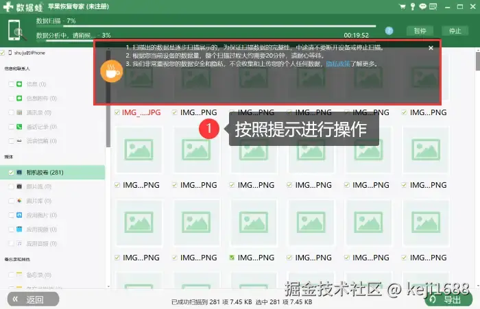 步骤2:在扫描过程中,根据屏幕上的提示进行正确的操作,然后软件会自动进行深层且私密的扫描。