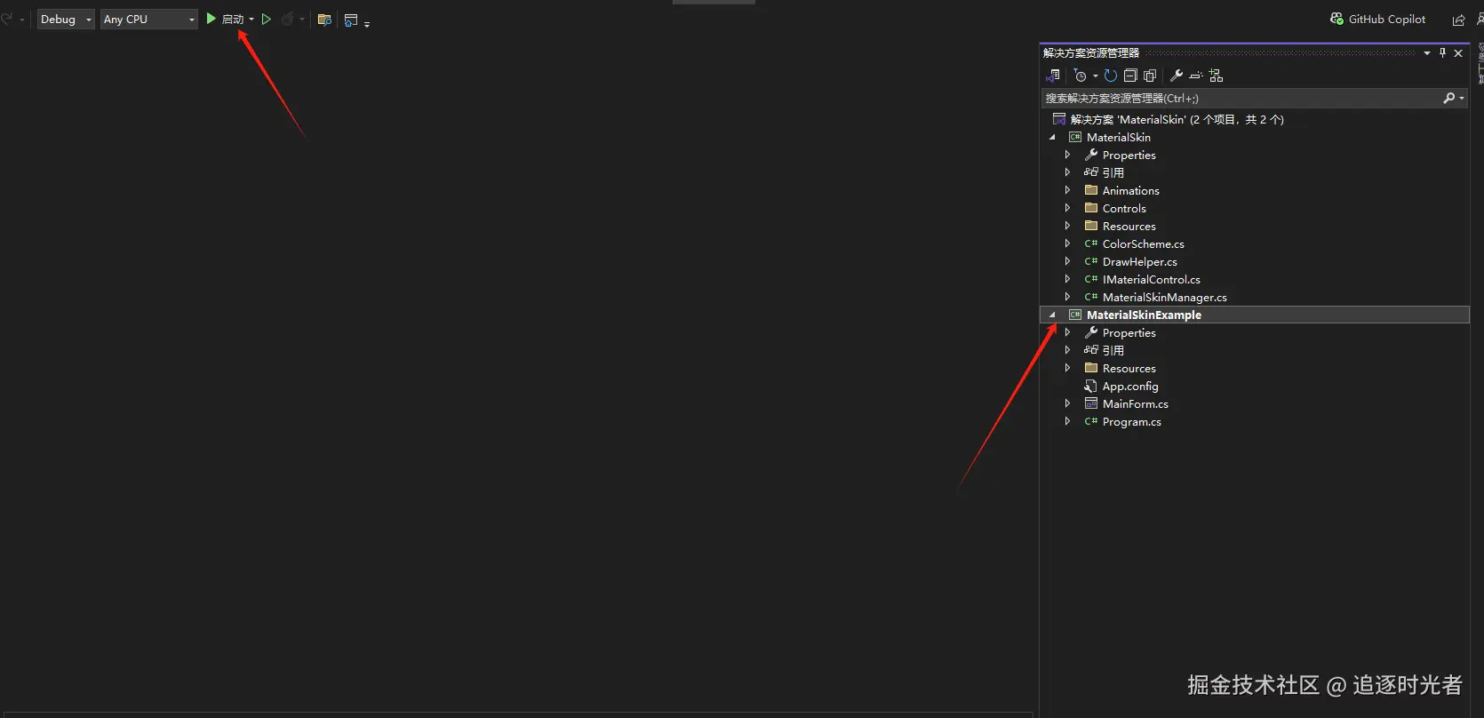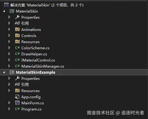 设置 MaterialSkinExample 为启动项目运行: