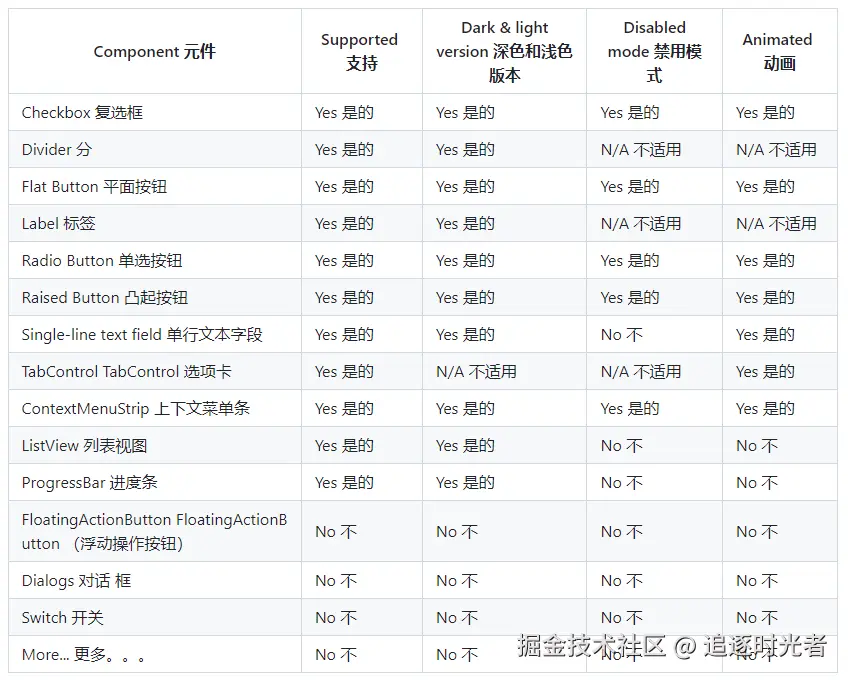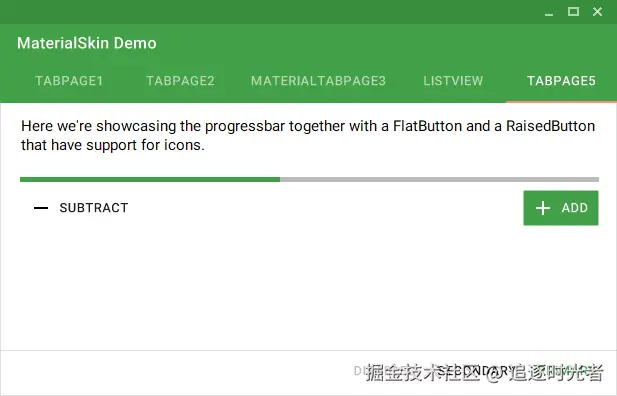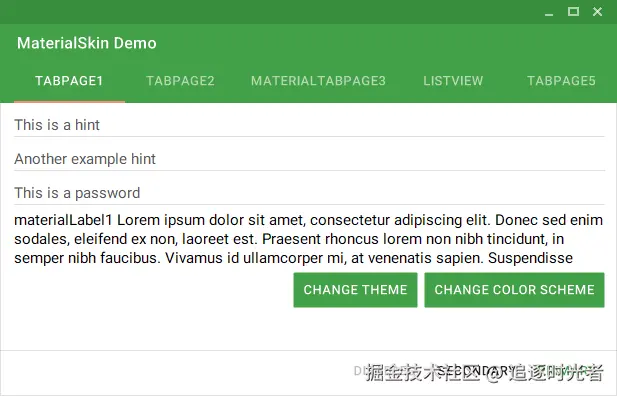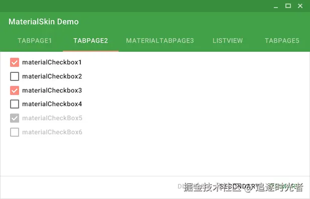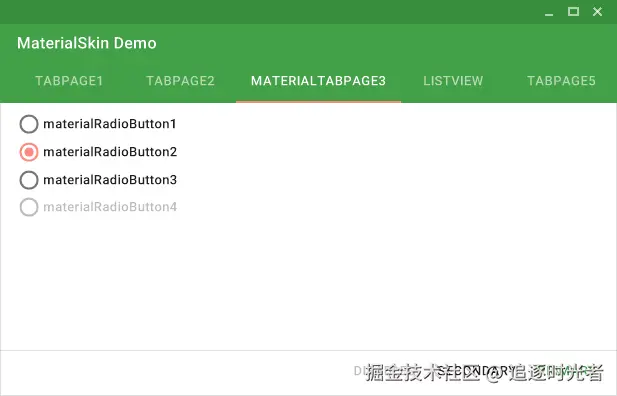 MaterialSkin 组件的当前状态: