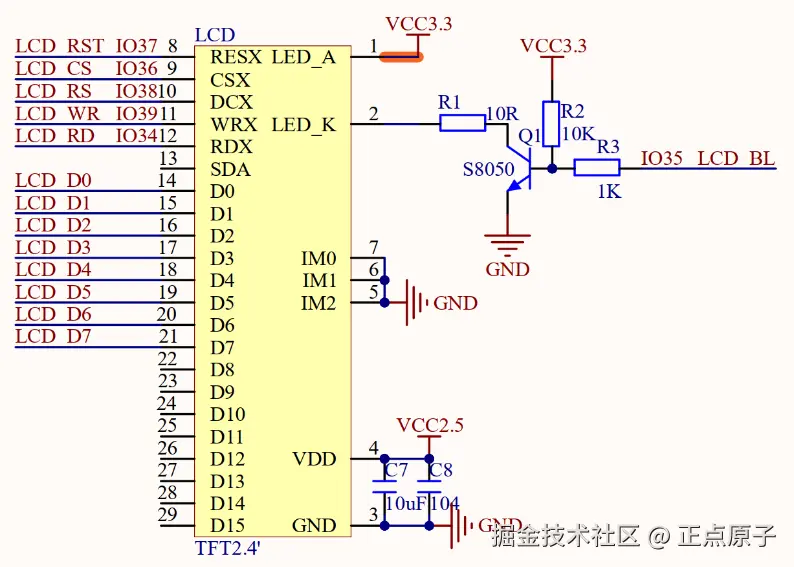 图24.2.3.1 LCD显示屏连接原理图
