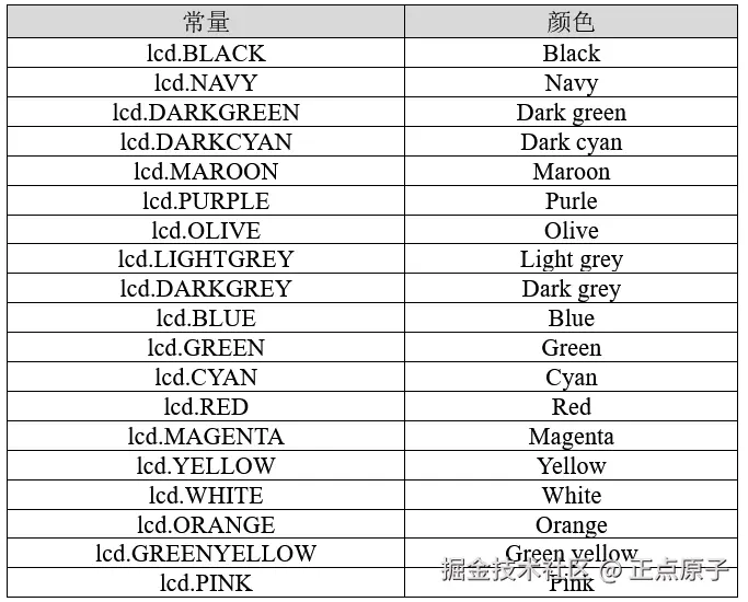 表24.1.1 lcd模块提供的颜色常量