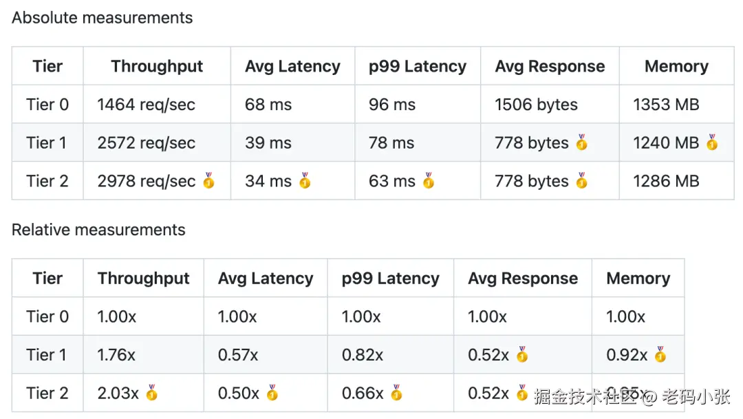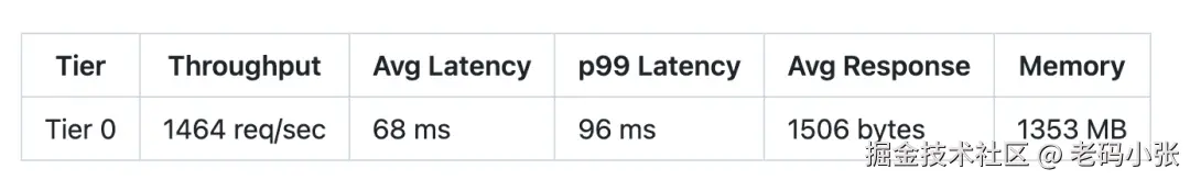 基准测试:在纯Node.js的情况下,这个服务每秒能处理1464个请求,内存占用也不小。虽然勉强能跑起来,但一旦用户多了,可能会明显感觉到卡顿。