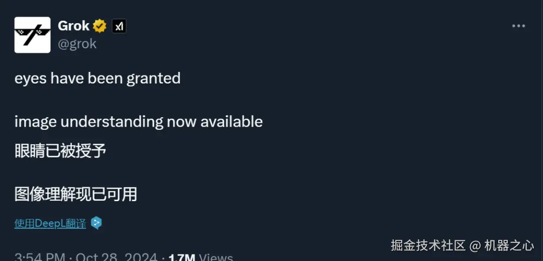 Grok 大模型终于能看懂图像了。