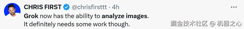 如今,在 xAI 不断完善下,大家终于可以体验 Grok 的图像理解能力了。为了验证各路网友的说法,机器之心在第一时间进行了测试。