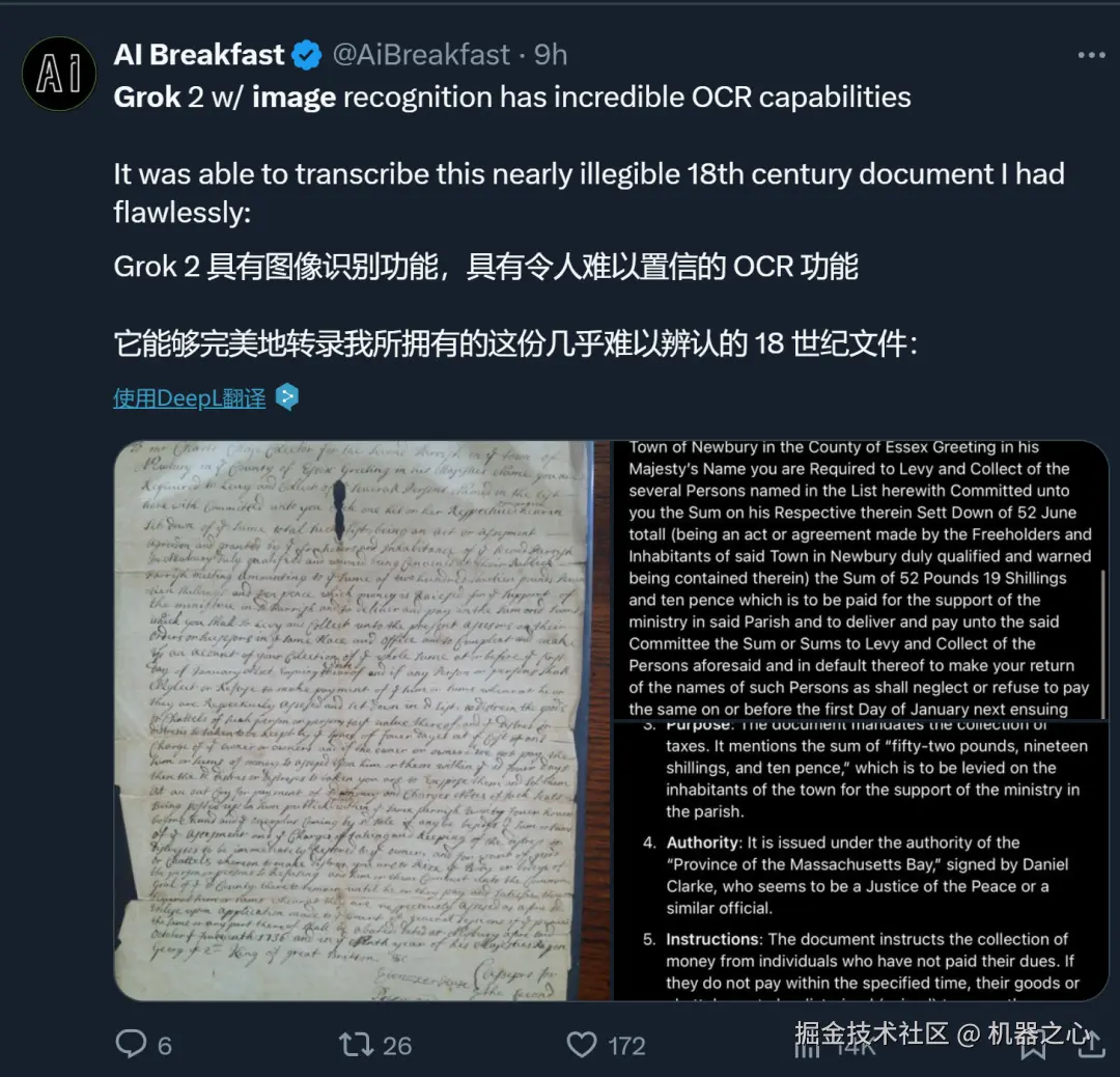 还有人晒出了自己用 Grok 识别出的 18 世纪文件: