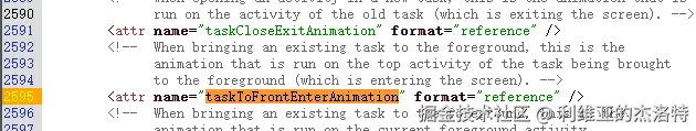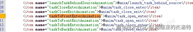 比如我们刚刚提到的,在我们分析的场景下,选取的动画资源ID为R.styleable.WindowAnimation_taskToFrontEnterAnimation。