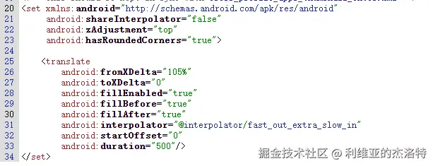 标签为”translate“,那么会解析为一个TranslateAnimation动画对象。
